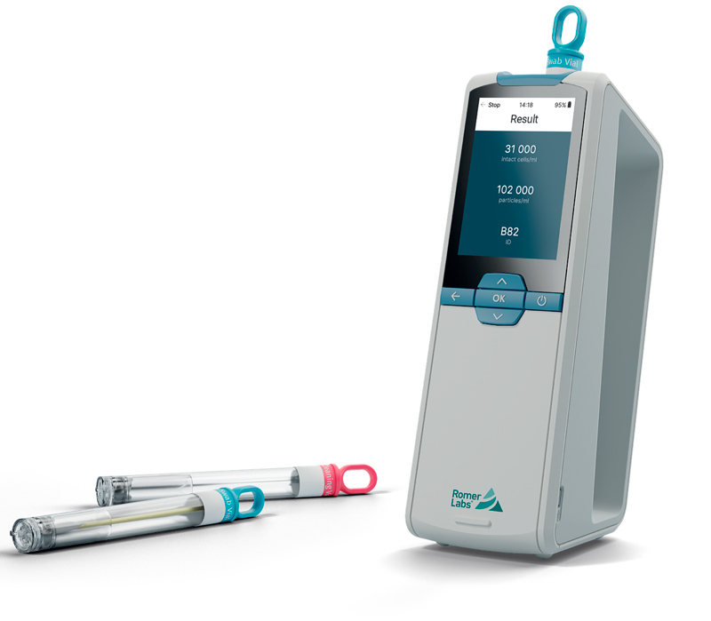 El sistema puede analizar hasta 4 muestras de forma independiente y simultánea. El ensayo dura solo 4 minutos y el lector controla el tiempo, la temperatura y el flujo, todo en un proceso simplificado. Con su incubadora integrada y resistencia al polvo y la suciedad, el lector garantiza resultados precisos y cuantitativos, y permite una documentación consistente. Además, nuestra extracción patentada a base de agua elimina los riesgos tanto para el usuario como para el medio ambiente.